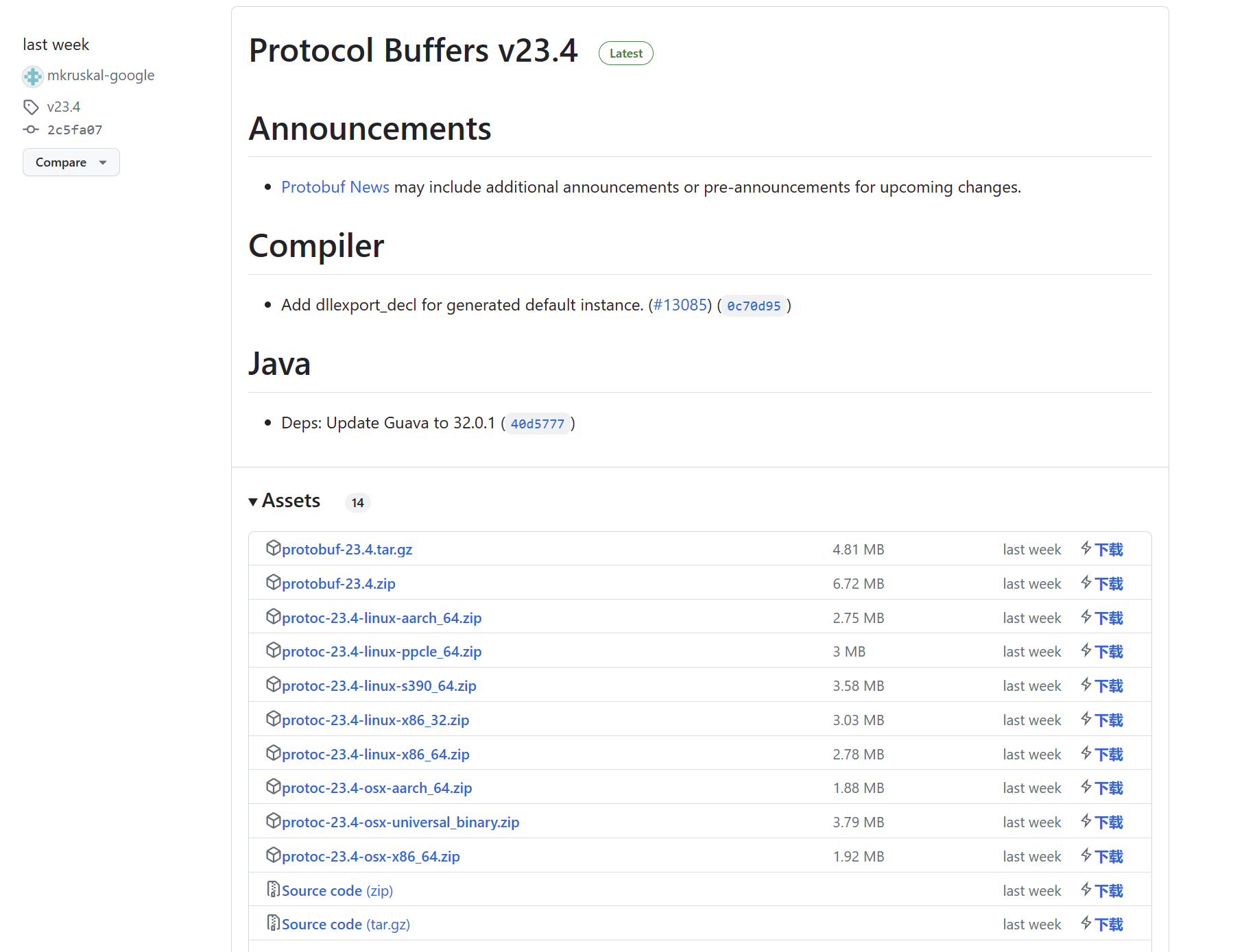 先下载 Protocol Buffer 编译器,下载地址:Releases · protocolbuffers/protobuf (github.com)