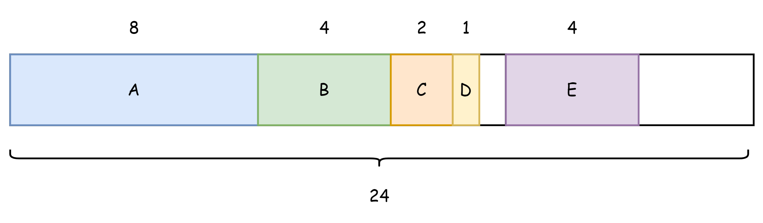 所以实际上是占用 24 个字节,其中有 5 个字节是无用的。
