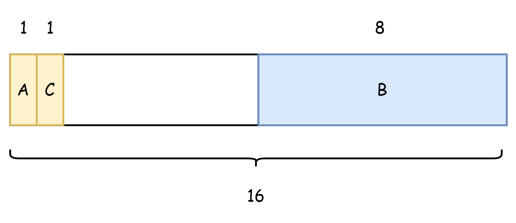 }如此一来就占用的内存就变为了 16 字节,浪费了 6 个字节,减少了 8 个字节的内存浪费。